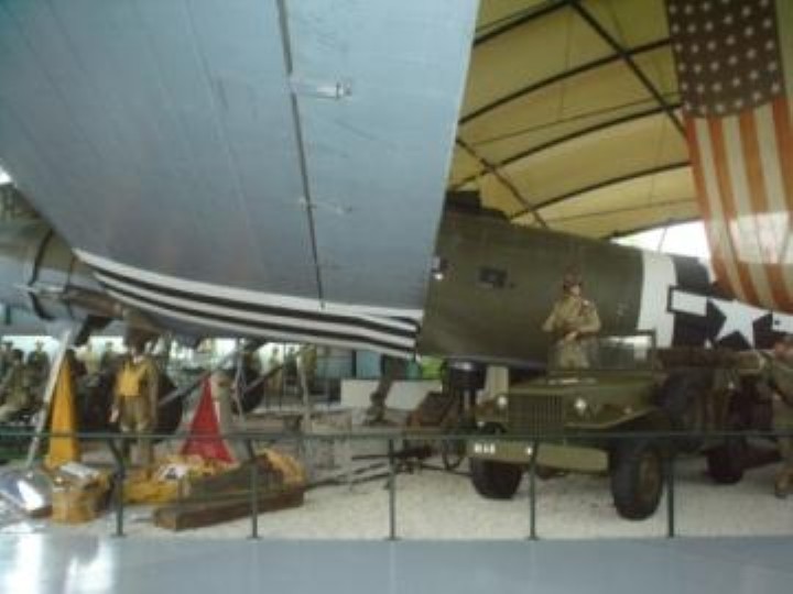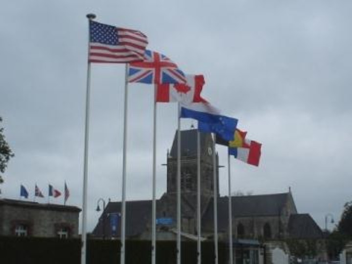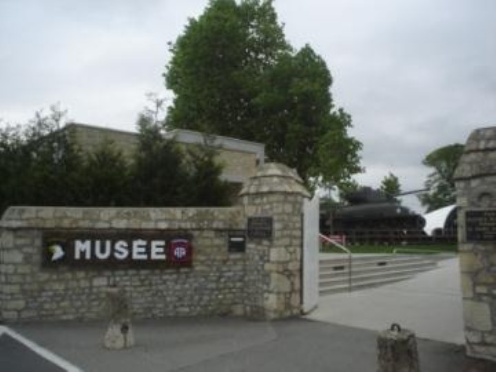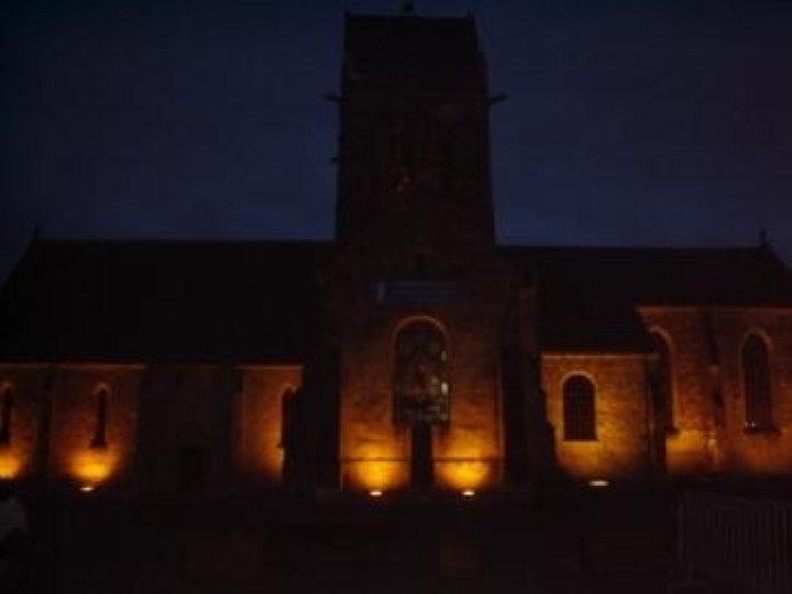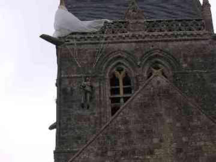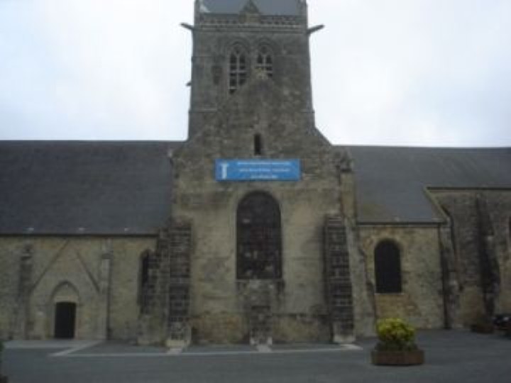 Bezoek aan de kerk met de parachutistenpop aan de toren. Veel geschiedenis hier.