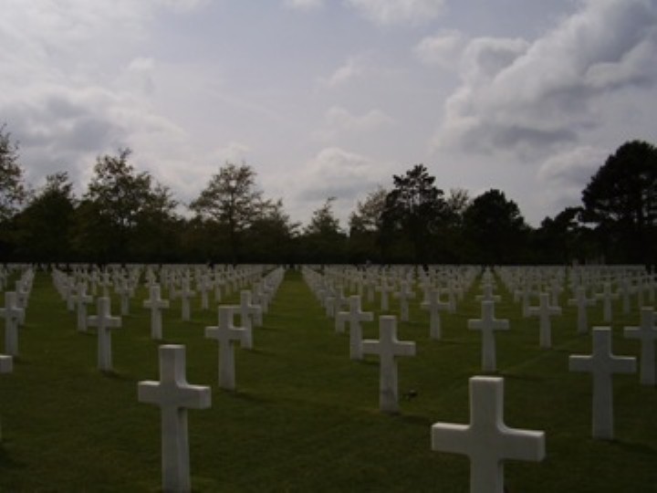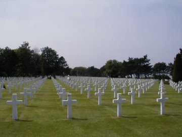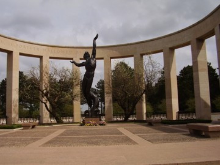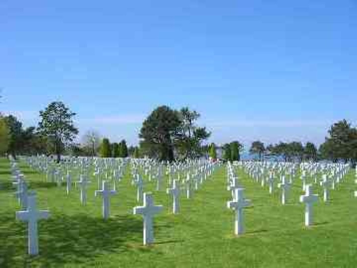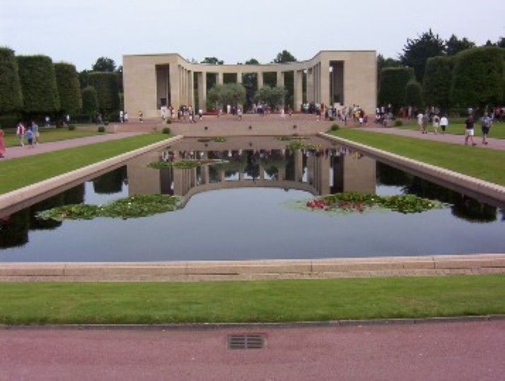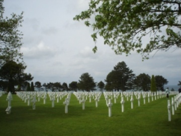 Uitkijkend over het strand van Omaha Beach ligt het 70 hectare grote American Cemetery van Colleville sur Me.